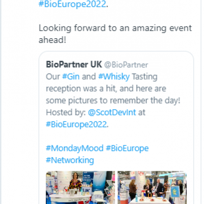 Click here or use the Search option above, to display profiles and representatives of UK based companies that registered through BioPartner to attend the conference. All UK companies that attended are listed on the BIO-Europe 2022 page.